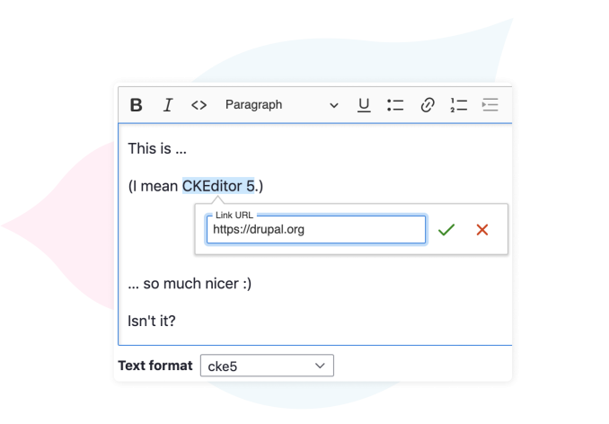 CKEditor 4 will reach its end of life in 2023, so Drupal 10 is moving to CKEditor 5. On the front end, it’s a greatly refined content editing experience.