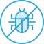 blue icon of a bug with a circle in a crossed out circle
