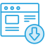 blue icon of a chart on a browser screen with a magnifying glass over it